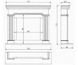 Цена указана за камин в стандартном исполнении (см. чертеж) из указанных материалов с открытым очагом.