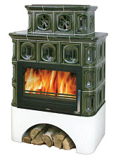 Камин на картинке – пристенная модель чешской каминной компании АВХ, состоящая из топочной камеры и облицовки из натурального песчаника. Топка этого камина из песчаника немного приподнята, организуя в цоколе пространство для открытой дровницы, где можно хранить суточный запас каминного топлива. Пред – и надтопочная часть фронтона облицована шамотным кирпичем, а плоское широкоформатное окно изготовлено из стеклокерамического материала, выдерживающего температурные нагрузки в 700 градусов Цельсия. Благодаря встроенной системе двойного дожига, позволяющей дровам сгорать практически без остатка, камин Glasgow Klasik имеет высокую тепловую эффективность, а развиваемая им мощность в 12 кВт позволяет без труда отапливать до 200 куб. метров жилого пространства.